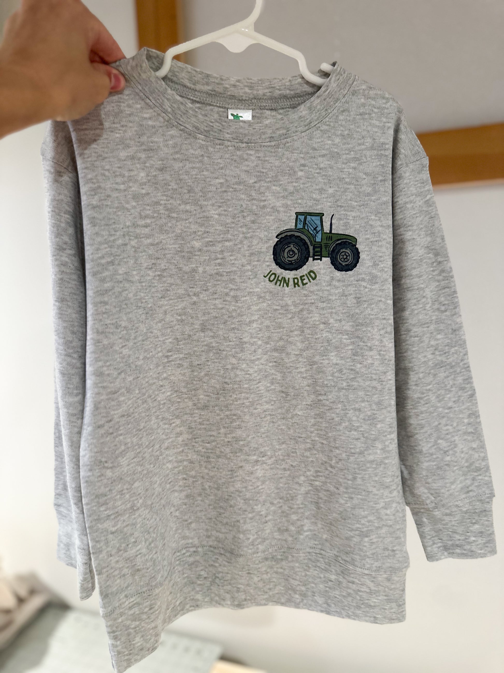 Design shown on heather gray long pullovers. Design is small located in front left logo area of shirt. Include name for personalization prior to adding product to cart - triple check name spelling and distinguish between first and middle name if you want both.