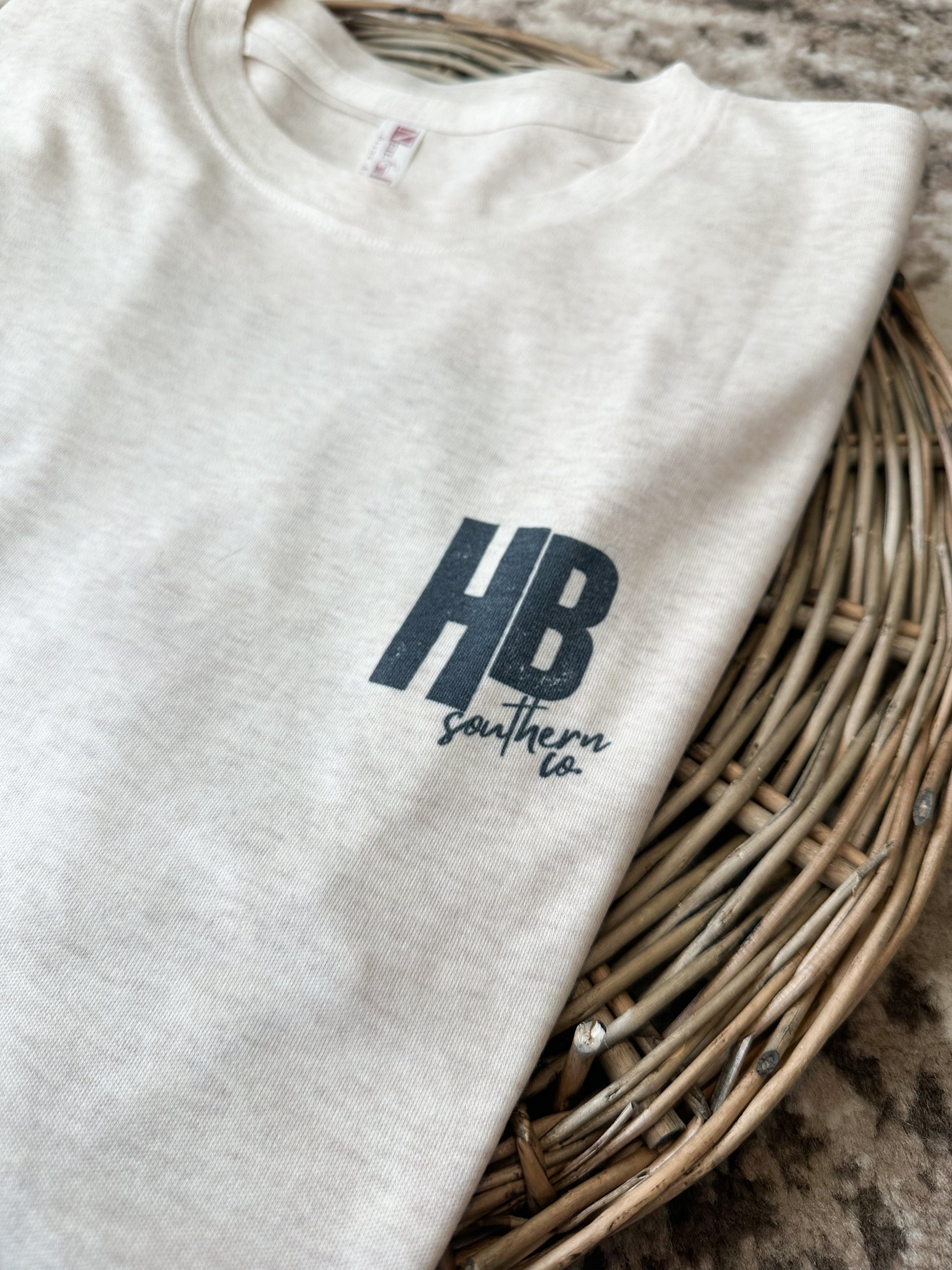 Design shown on oatmeal. Main design on back of shirt with front left logo as shown in second listing photo.