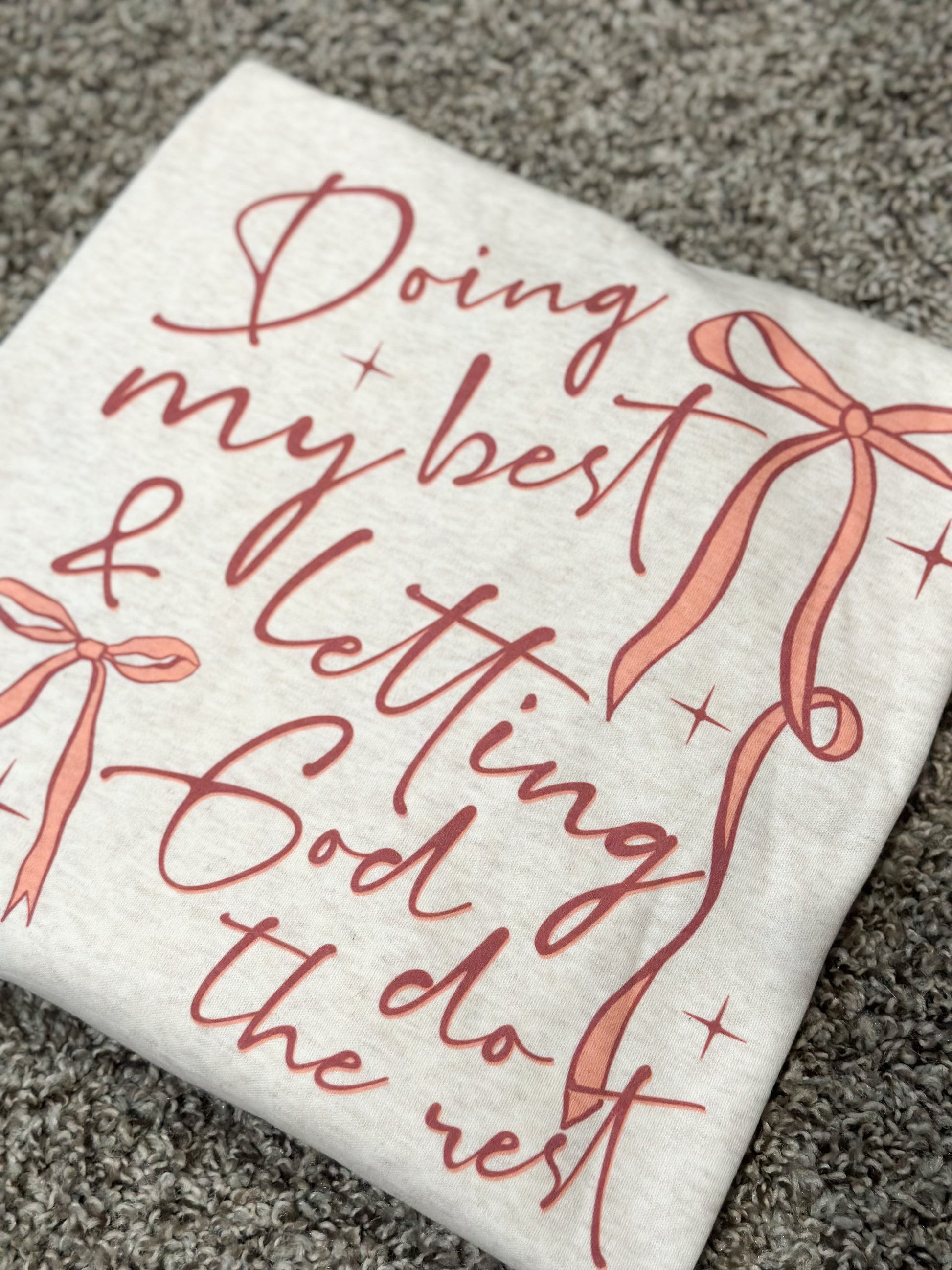 Oatmeal, white, and heather gray tees are a buttery soft material made of 65% polyester 35% cotton. These tees will begin to have a washed worn look after several washes.